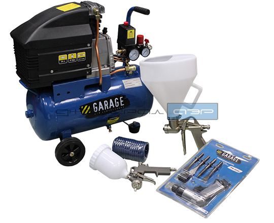 Уникальный набор WALL KIT идеально подходит для декоративно-штукатурной обработки стен. Он поможет обновить старое покрытие стен, нанести цементные смеси, декоративное текстурное покрытие, жидкие обои, мраморную крошку и другие подобные материалы методом распыления. В набор входят:<ul><li>поршневой компрессор Garage PK 24.MK310/2;</li><li>пневмомолоток с набором зубил;</li><li>пневмохоппер;</li><li>краскораспылитель с верхним бачком;</li><li>воздушный шланг 5 метров.</li></ul>